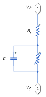 В дополнение к уравнениям варистора можно также указать постоянное сопротивление клеммы Rt и емкость устройства C. На этом рисунке показана эквивалентная схема варистора в любом режиме параметризации.