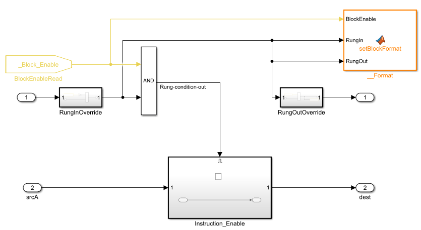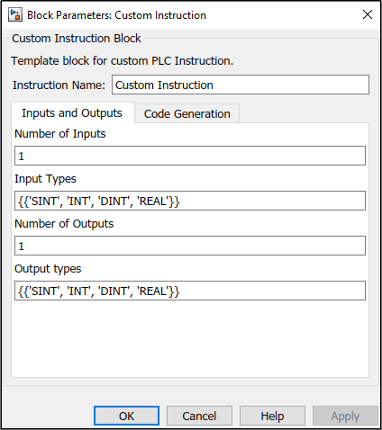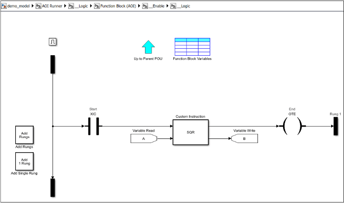 Чтобы создать определенную пользователями инструкцию, используйте таможенный блок Инструкции, добавленный к Библиотеке Лестницы Simulink® PLC Coder™.