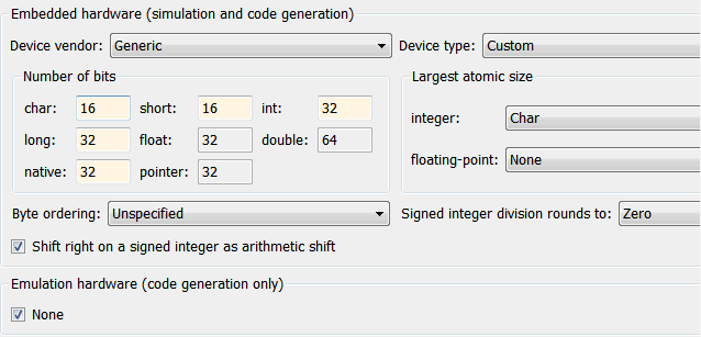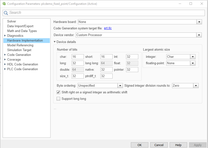 В диалоговом окне Параметры конфигурации модели (Model Configuration Parameters) щелкните значок Hardware Implementation узел.