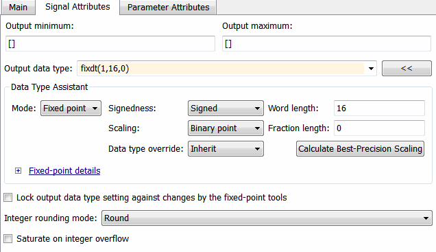 Для параметра Тип выходных данных выберите тип данных с фиксированной точкой.