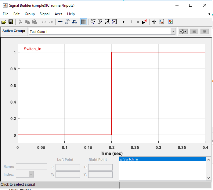 Измените входные данные Signal Builder, чтобы имитировать операцию переключения, как показано на рисунке.