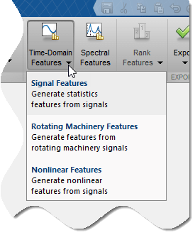Создание функций на основе общей статистики данных с использованием сигнала TSA в качестве источника. Выберите Функции временной области > Функции сигнала.