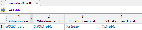 На рисунке показан пример таблицы результатов элемента с остатками. Таблица содержит два остаточных сигнала и два набора признаков, вычисленных из этих сигналов.