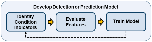 Использование выбранных элементов для обучения соответствующей модели оценки RUL является следующим шагом в процессе разработки алгоритма. Дополнительные сведения см. в разделе Модели прогнозирования оставшегося срока службы.