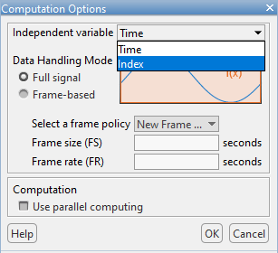 Если известно время выборки сигнала, можно восстановить переменную времени. Для этого измените имя независимой переменной на имя, тип IV на Время, Единица измерения на необходимые единицы времени и Интервал выборки на время выборки. Например, учтите, что известно время выборки для обоих Vibration и Tacho составляет 0,001 секунды. На следующем рисунке показано, как установить это время образца для Vibration. Обратите внимание, что эти настройки не влияют на Tacho.