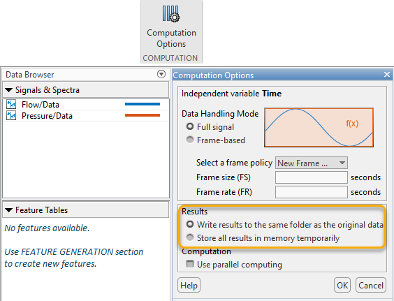 Приложение может хранить все результаты в памяти. Чтобы сохранить эти результаты вне сессии, необходимо экспортировать набор данных или набор элементов в таблицу в рабочей области. Затем можно выбрать результаты, которые требуется сохранить. В окне команд MATLAB можно использовать команды ensemble datastore для обновления внешних файлов в соответствии с выбранными результатами.