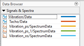 Подтвердите импорт в браузере данных. В этом примере два сигнала появляются в области Signals & Spectra. Щелкните Наборы данных (Datasets), чтобы просмотреть все переменные ансамбля, включая элементы и переменные условий.