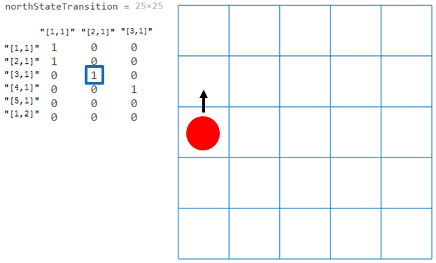 s, a). Например, рассмотрим детерминированный объект мира сетки 5 на 5 northStateTransition = GW.T(:,:,1)