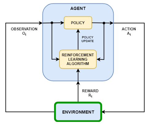 В сценарии обучения усилению, в котором агент обучается выполнению задачи, среда моделирует внешнюю систему (то есть мир), с которой агент взаимодействует. В системах управления эту внешнюю систему часто называют установкой.