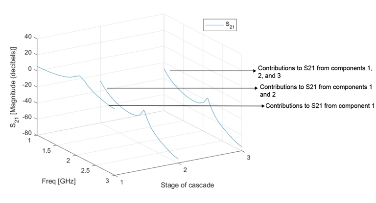 analyze(casc,linspace(1e9,3e9,100)); plot(casc,'budget','s21')