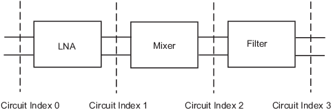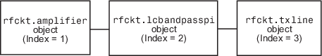 casc = rfckt.cascade('Ckts',... {rfckt.amplifier,rfckt.lcbandpasspi,rfckt.txline})