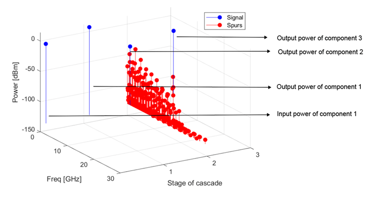 Для этого каскада создается прямолинейный график с помощью plot метод со вторым аргументом, имеющим значение 'mixerspur', как показано в следующей команде: