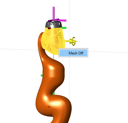 Модель робота имеет связанные с ней визуальные компоненты. Каждый rigidBody объект содержит координатную рамку, которая отображается в качестве основной рамки. Каждое тело также может иметь связанные с ними визуальные сетки. По умолчанию оба этих компонента отображаются автоматически. Можно проверить или изменить визуальные компоненты отображения дерева жесткого тела. Щелкните рамки тела или визуальные сетки, чтобы выделить их желтым цветом и увидеть связанные имя тела, индекс и тип соединения. Щелкните правой кнопкой мыши для переключения видимости отдельных компонентов.
