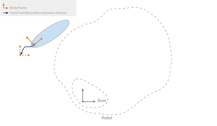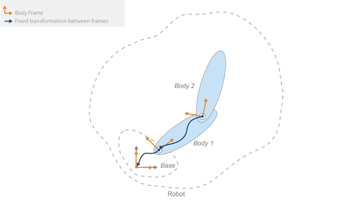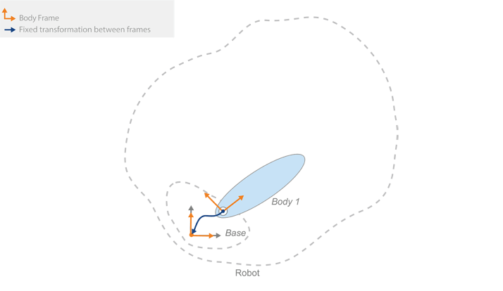 Добавьте первое тело в дерево. Укажите, что оно прикрепляется к основанию дерева. Фиксированное преобразование, определенное ранее, от базового (родительского) к первому телу.