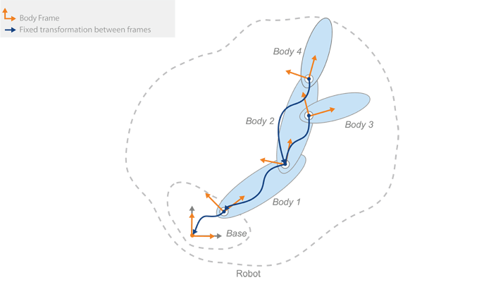 Если у вас есть конкретный концевой эффектор, который вам нужен для управления, определите его как жесткое тело с фиксированным соединением. Для этого робота добавьте конечный эффектор к body4 чтобы вы могли получить преобразования для него.