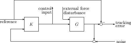 Разумная, хотя и не точная, цель конструкции состояла бы в том, чтобы сконструировать K для сохранения ошибок отслеживания и управления входным сигналом малым для всех разумных опорных команд, шумов датчиков и внешних силовых возмущений.