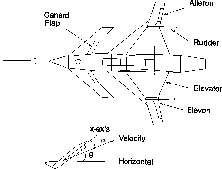 Эта модель хороша на частотах ниже 100 рад/с с менее чем 30% вариацией между истинным самолетом и моделью в этом диапазоне частот. Однако, как отмечено в [8], он не улавливает надежно очень высокочастотное поведение, поскольку он был получен, рассматривая летательный аппарат как жесткое тело и пренебрегая слегка затухающими режимами изгиба фюзеляжа, которые происходят где-то от 100 до 300 рад/с. Эти немодулированные режимы изгиба могут привести к отклонению в 20 дБ (т.е. 1000%) между частотной характеристикой модели и фактическим самолетом для частоты λ > 100 рад/с. Другие эффекты, такие как задержки времени исполнительного механизма управления и проскальзывание топлива, также способствуют неточности модели на еще более высоких частотах, но доминирующими немодулированными эффектами являются режимы изгиба фюзеляжа. Эти немодулированные режимы изгиба можно рассматривать как мультипликативную неопределённость размера 20 дБ, и проектировать свой контроллер с помощью шлейфа, убедившись, что коэффициент усиления контура составляет менее -20 дБ при и за его пределами, на частоте λ > 100 рад/с.