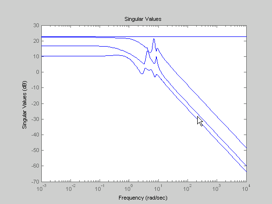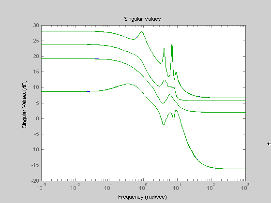 График сингулярного значения Bode G (30 состояний, 5 выходов, 4 входа) показывает график сингулярного значения Bode случайной системы G с 20 состояниями, 5 выходными и 4 входами. Система ошибок между G и его Zeroth порядка Hankel MDA имеет бесконечность норму, равную функции всех проходов, как показано в All-Pass Error System между G и Zeroth Order G Anticausal.