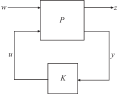 nmeas и ncont - количество сигналов в y и u соответственно. y и u являются последними выходами и входами Pсоответственно. hinfsyn возвращает контроллер K что стабилизирует P и имеет одинаковое количество состояний. Система замкнутого контура CL = lft(P,K) достигает уровня производительности gamma, которая является H∞ нормой CL (см. hinfnorm).