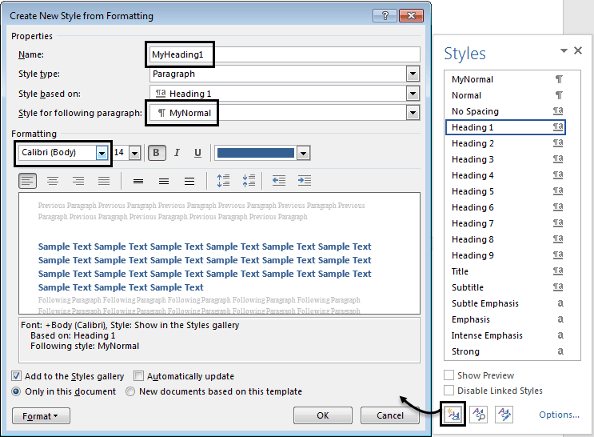 Создайте MyHeading1 стиля на основе заголовка 1.