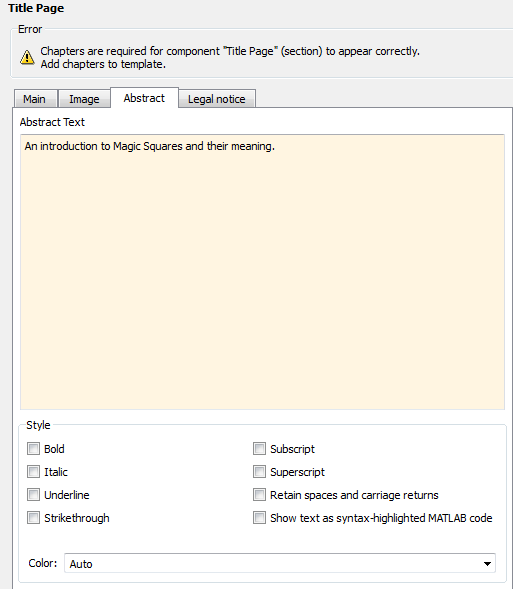 Для заголовка пользовательской главы на панели «Свойства» справа введите Magic Squares Explained.