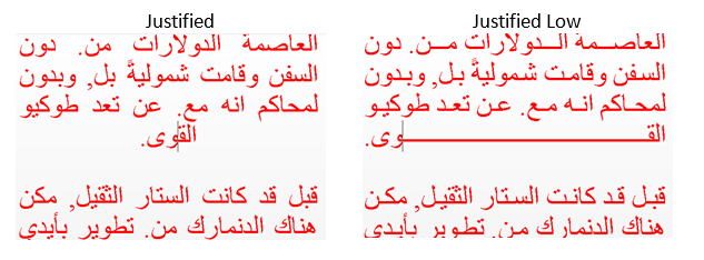 'justified' - выровненные по левому краю и по правому краю, равномерно разнесенные слова