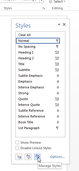 На панели «Стили» нажмите кнопку «Управление стилями».