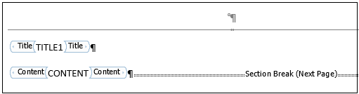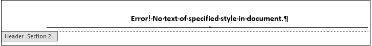 Шаблон Section1 занимает менее страницы. Таким образом, при копировании шаблона Section1 из галереи QuickPart репортера раздела (то есть библиотеки шаблонов) в тело default.dotx шаблон, появляется только первая страница раздела. Однако Word создает страницу с новым разделом (раздел 2), который наследует заголовки страниц шаблона Section1. Word заменяет поле StyleRef в заголовке этого нового раздела сообщением об ошибке, поскольку в новом разделе нет абзаца со стилем ссылки.