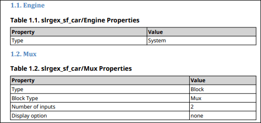 Добавление результата текущего блока в репортер раздела. Добавление результирующих наборов для репортера разделов Content к свойству simulink.report.SimulinkObjectProperties репортер. Это SimulinkObjectProperties reporter генерирует таблицу свойств текущего блока, которая затем добавляется в раздел. Добавьте каждый подраздел к родительской главе. Затем добавьте главу в отчет.
