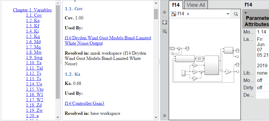 Этот класс создает отчет для переменных рабочего пространства и словаря данных, используемых указанной моделью Simulink ® .