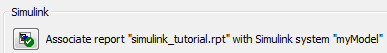 На панели свойств в разделе Simulink щелкните Связать отчет с системой Simulink. Имена отчета и модели являются частью метки кнопки.
