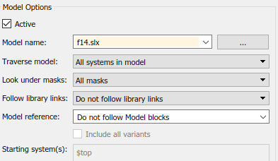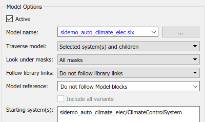 Включить все варианты: Отчет по всем моделям вариантов. Чтобы включить эту опцию, задайте опцию Привязка модели (Model reference) для отчета о блоках в ссылочных моделях.