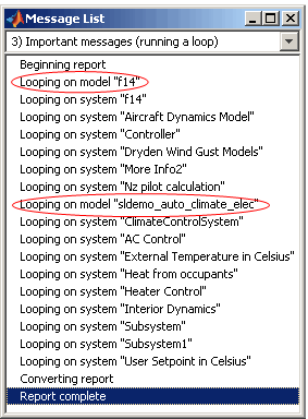 Отчет закольцовывается в системе. ClimateControlSystem из sldemo_auto_climate_elec модель и все ее подсистемы, как показано в следующем списке сообщений.