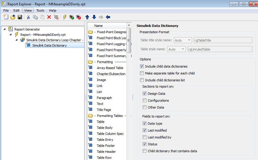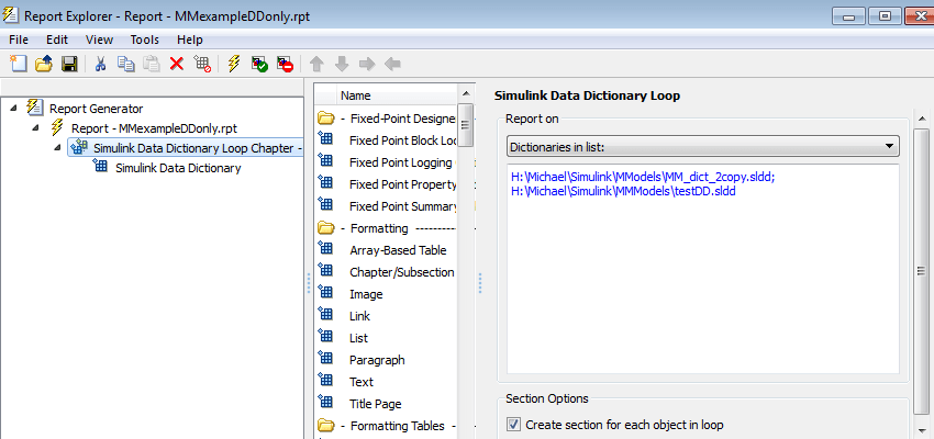 Предположим, что HTML-отчет настраивается с помощью компонента Simulink Data Dictionary Loop.