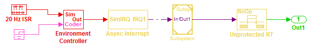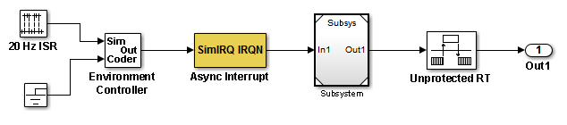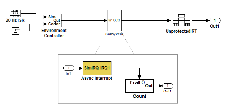 Можно использовать блок Спецификация асинхронной задачи (Asynchronous Task Specification), чтобы указать асинхронный ввод вызова функции для привязки модели. Однако необходимо преобразовать блоки асинхронного прерывания и вызова функции в подсистему, а затем преобразовать подсистему в ссылку на модель.