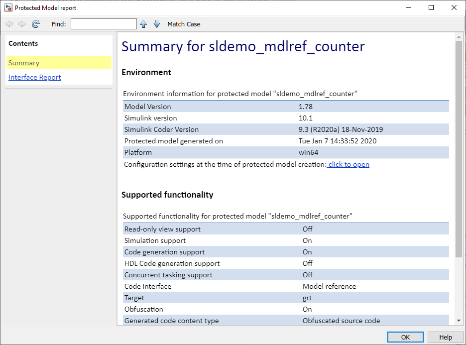 Если вы хотите поделиться моделью со сторонней компанией без раскрытия интеллектуальной собственности, защитите модель. При создании защищенной модели детали реализации исходной модели скрываются путем ее компиляции в ссылочную модель. Защищенная модель включает производные файлы для поддержки указанных дополнительных функциональных возможностей.