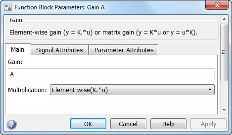 Например, в диалоговом окне «Усиление блока» невозможно изменить выражение A в параметре Gain во время моделирования. Вместо этого необходимо изменить значение переменной A в базовом рабочем пространстве. Невозможно изменить выражение, так как созданный код не выделяет хранилище в памяти для параметра Gain. Вместо этого код создает поле A в структуре: