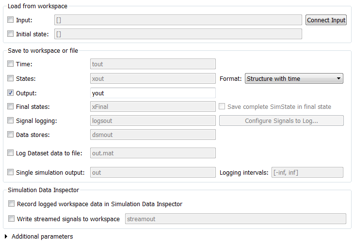 Существует несколько методов, с помощью которых программа, созданная программным обеспечением Simulink ® Coder™, может сохранять данные в MAT-файл для анализа. Созданный исполняемый файл может сохранять состояния системы, выходные данные и время моделирования на каждом шаге времени выполнения модели. Данные записываются в MAT-файл с именем (по умолчанию ), где model.matmodel - имя модели. Руководство по регистрации данных см. в разделе Данные журнала для анализа.