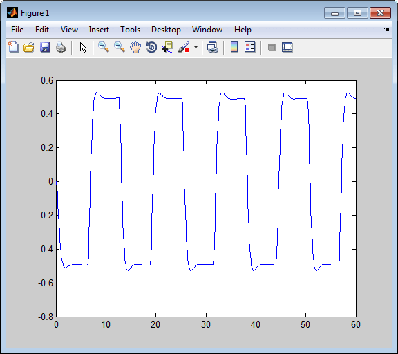 Убедитесь, что время моделирования и выходные данные сохранены в базовом рабочем пространстве в MAT-файлах. В приглашении MATLAB введите: