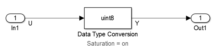 В этой модели блок преобразования типа данных преобразует входной сигнал из double в uint8. В этом примере модель называется conversion_ex.