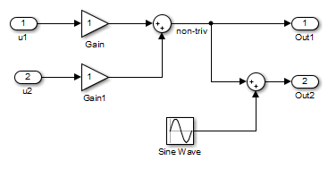 Например, рассмотрим S-функцию с двумя входами и двумя выходами, где