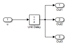 Этот фрагмент кода показывает код, сгенерированный из блока «Unit Delay» в данной блок-схеме. Три корневых выхода назначаются непосредственно из состояния блока единичной задержки, который хранится в поле глобальной структуры данных. rtDWork. Поскольку назначение является прямым, без выражений не существует никакого штрафа производительности, связанного с использованием тривиального выражения для нескольких назначений.