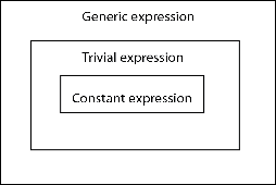Набор базовых выражений является надсетью набора тривиальных выражений, а набор тривиальных выражений является надсетью набора константных выражений.
