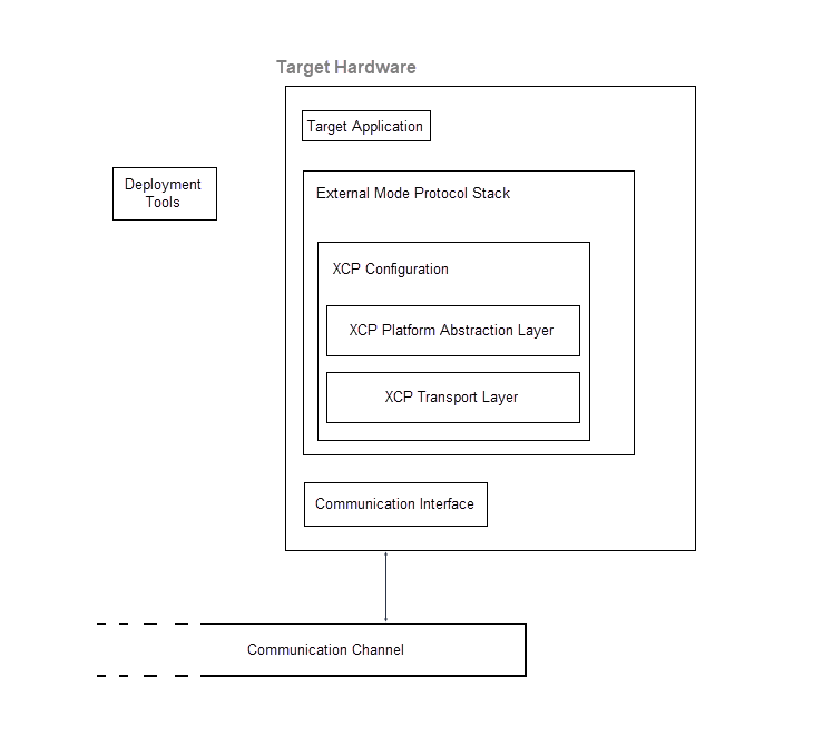 Для кода, генерируемого с помощью ERT (ert.tlc) и GRT (grt.tlc) целевые файлы системы, можно выполнять моделирование внешнего режима с использованием протокола связи XCP: