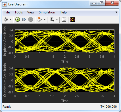 Блок диаграммы глаз отображает несколько трасс модулированного сигнала для получения диаграммы глаз. Можно использовать блок для отображения характеристик модуляции сигнала, таких как эффекты формирования импульсов или искажения канала..