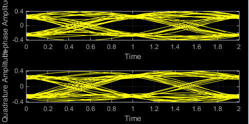 Попробуйте изменить параметры фильтра передачи увеличенного косинуса или дополнительные параметры диаграммы глаз, чтобы увидеть их влияние на диаграмму глаз.