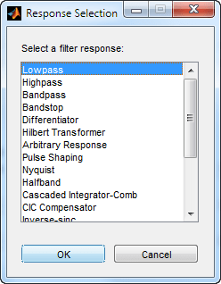 При наличии программного обеспечения DSP System Toolbox появляется следующее меню Response Selection.