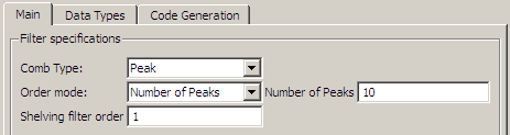 Выбрать ответ фильтра как Comb и арифметика на панели «Типы данных» как Fixed point.