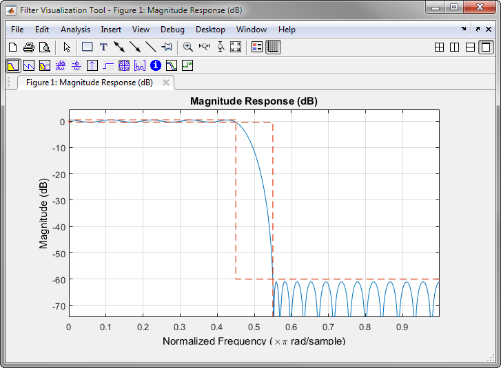 fvtool(b1,a1,b2,a2,...,bN,aN)fvtool(b1,a1,b2,a2,...,bN,aN) открывает FVTool и отображает амплитудные характеристики нескольких фильтров, определенных числителями b1, …, bN и знаменатели a1, ..., aN.