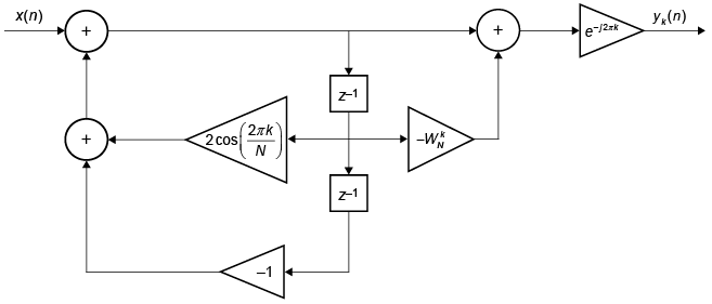 Алгоритм Гертцеля реализует дискретное преобразование Фурье X (k) как свертку N-точечного входа x (n), n = 0, 1,..., N - 1, с импульсной характеристикой